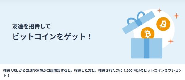 ・以下の紹介リンクから口座開設すると、1,500円分のBTC(ビットコイン)がもらえる