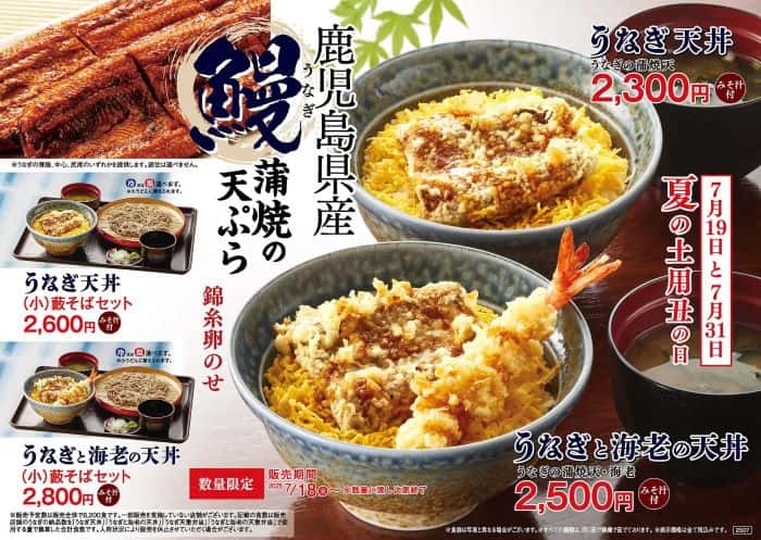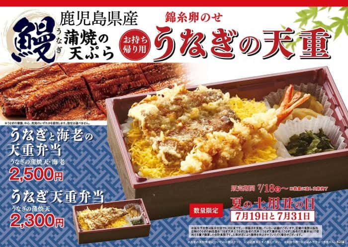 ロイヤルグループが展開する天丼・天ぷら専門店「天丼てんや」は、土用の丑の日に合わせた限定メニューとして、鹿児島県産うなぎの蒲焼きを使用した「うなぎと海老の天丼」と「うなぎ天丼」を計8,200食限定で販売します。