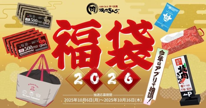 『焼肉きんぐ』は「焼肉きんぐの福袋2026」の抽選受付をスタートします。今年は公式アプリからの事前抽選販売となり、当選された方は店頭にてお買い求めいただけます。