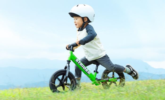 ペダルなし自転車は、足で蹴って進むので左右のバランスに気をつけていればそのうち乗れるようになれます。