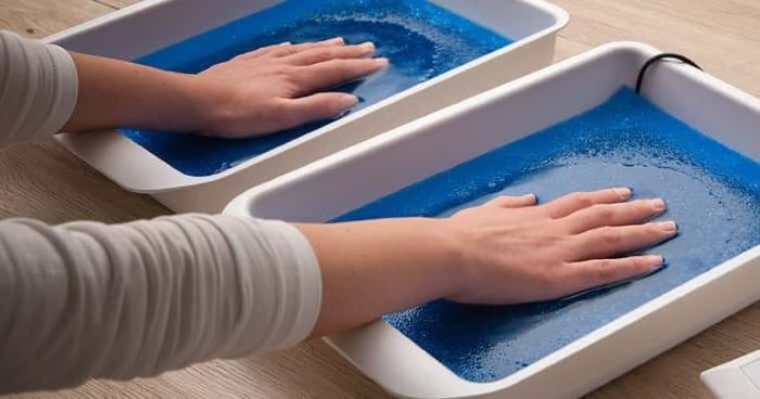 準備が完了して、手を水の張ったトレイに入れると開始します。