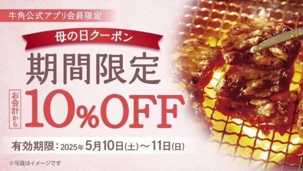 >>【牛角】まだ間に合う「母の日」!焼肉「10%OFF」でお母さんも子供も嬉しい時間 | 株式会社レインズインターナショナルのプレスリリース