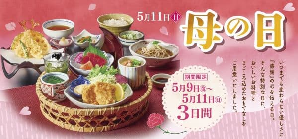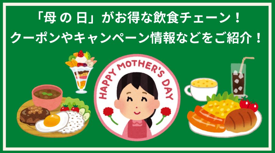 飲食チェーン店では「母 の 日」にちなんで、お得なキャンペーンやクーポン配布を行っています。