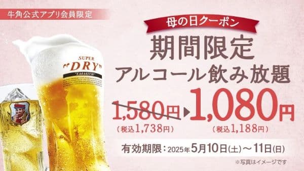 牛角「土日も使える!選べる2種のクーポン」を配布