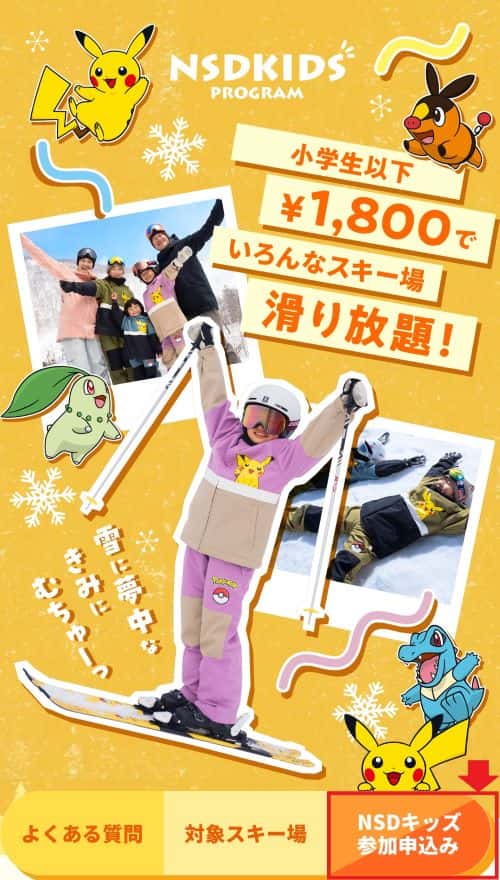 【2025-26NSDキッズプログラム】(小学生リフト無料)の概要です。