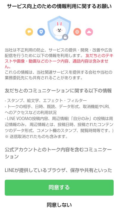 ログインすると、「サービス向上のための情報利用に関するお願い」の項目がでてきますので、同意していくと登録が完了します。