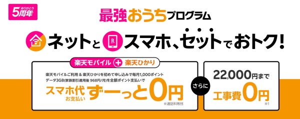 \ 【最強おうちプログラム】 楽天ひかりと楽天モバイルがセットでおトク /