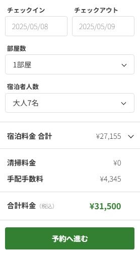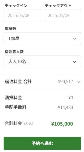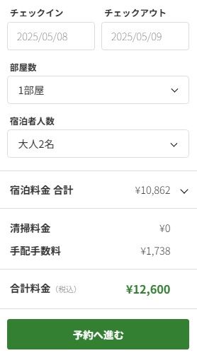 ※例として、2025年5月8日(木)~9日(金)の料金を参考に算出