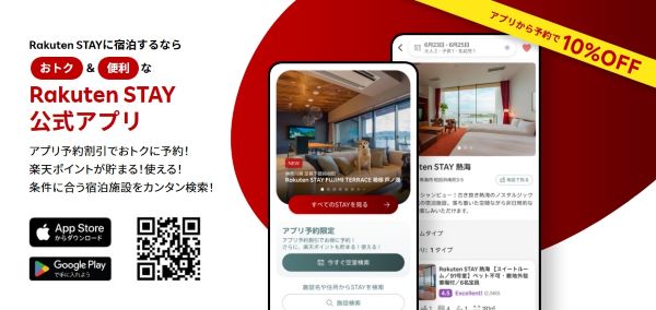 Rakuten STAY公式アプリからの予約で10%OFFになります。