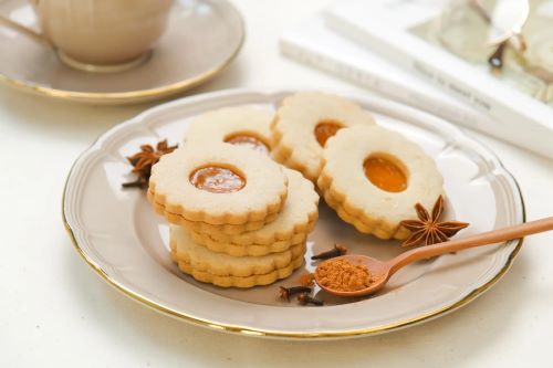 アーモンドを混ぜ込んだ軽やかなサブレで、甘酸っぱいアプリコットジャムをやさしくサンドした、香り高い焼き菓子です。