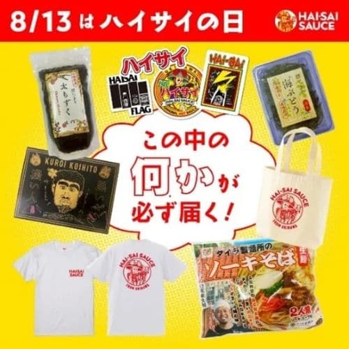 8月13日はハイサイの日!キャンペーン期間中ハイサイソース公式サイトでお買い物をすると、ハイサイと嫁ニーからのお中元が必ず届きます。何が届くかは開けてからのお楽しみ!